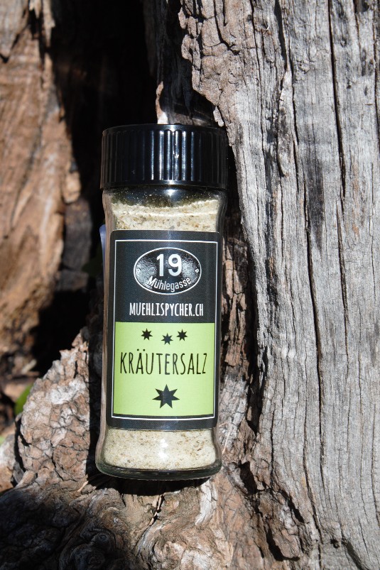Unser Kräutersalz wird von Hand aus Schweizer Alpensalz, Knoblauch, Senfpulver, Rosmarin, Oregano, Basilikum, Liebstöckel, Olivenöl, Petersilie, Thymian und Pfeffer hergestellt.