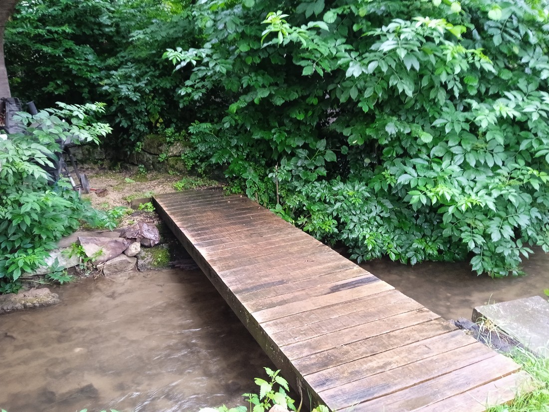 Das idyllische Plätzchen hinter dem Spycher lädt zum Verweilen ein. An dem grossen Holztisch kann die selbst zubereitete Mahlzeit genossen werden und dabei mit Glück noch das Zirpen der Grillen und das Vogelgezwitscher belauscht werden. An heissen Tagen dürfen gerne die Füsse in den wunderbar kühlen Bach getaucht werden.